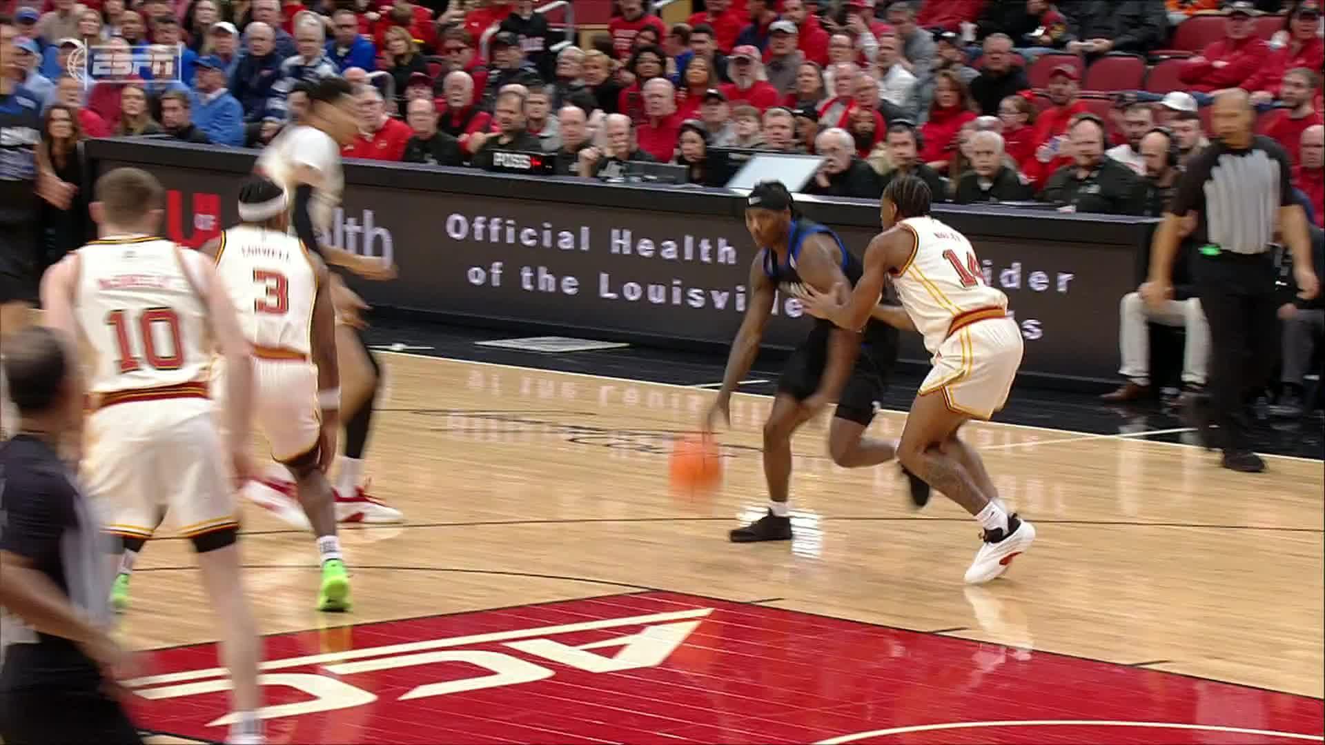 Cooper Flagg drives into the lane and throws up a floater, but it comes up short in a 123-121 loss to the Hornets.